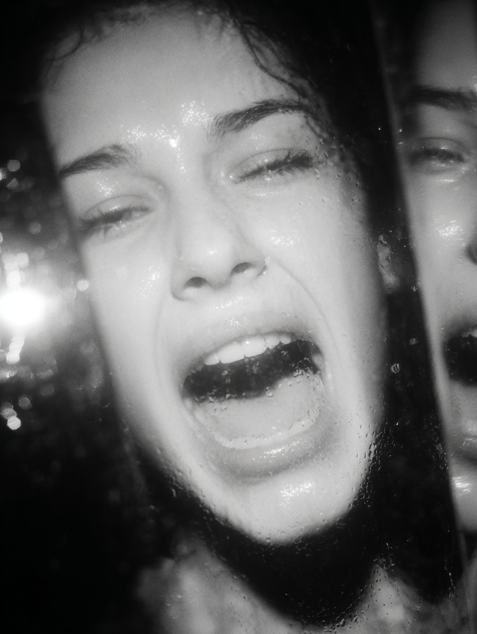 Der Schrei entfaltet sich hier als Akt der Selbstermächtigung. Die sinnbildlichen Wassertropfen auf der Haut sprechen von jener kathartischen Reinigung, die nur durch Blut, Schweiß und Tränen möglich wird, wenn wir aufhören, perfekt sein zu wollen, und anfangen, authentisch zu leben. Das intensive Schwarz-Weiß verstärkt die Unmittelbarkeit des Moments – hier gibt es keine Nuancen, keine Kompromisse, nur die reine, ungefilterte Wahrheit des Fühlens.