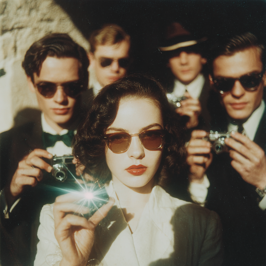 Dies ist ein Selfie des Selfies ohne Likes und Kommentare, das in einem Blitzlichtgewitter zusammengestellt wird. Specula Temporis ist das Bild hinter dem Bild eines Prozesses, der uns lehrt, dass die Wahrheit unseres Seins im grellen Schein des Egos zersetzt wird. Die Linse blickt nicht in Gesichter, sondern in die unheimliche Gleichförmigkeit derer, die sich gegenseitig im Labyrinth ihrer eigenen Gier nach Anerkennung jagen. Die Protagonistin, gefangen in einem Moment der vollkommenen Stille, ist die zentrale Figur eines Gerichts, in dem sie, die Anmut des Moments, sich der ewigen Anklage des Kollektivs stellen muss, gesehen und gemocht zu werden.