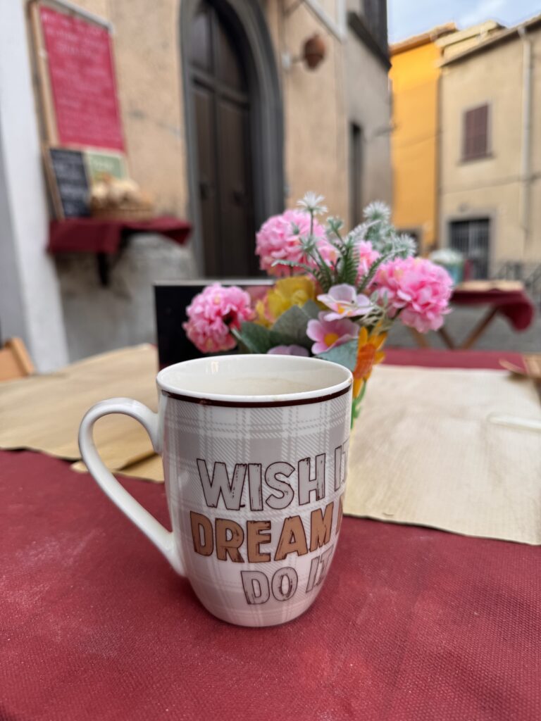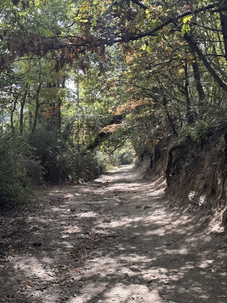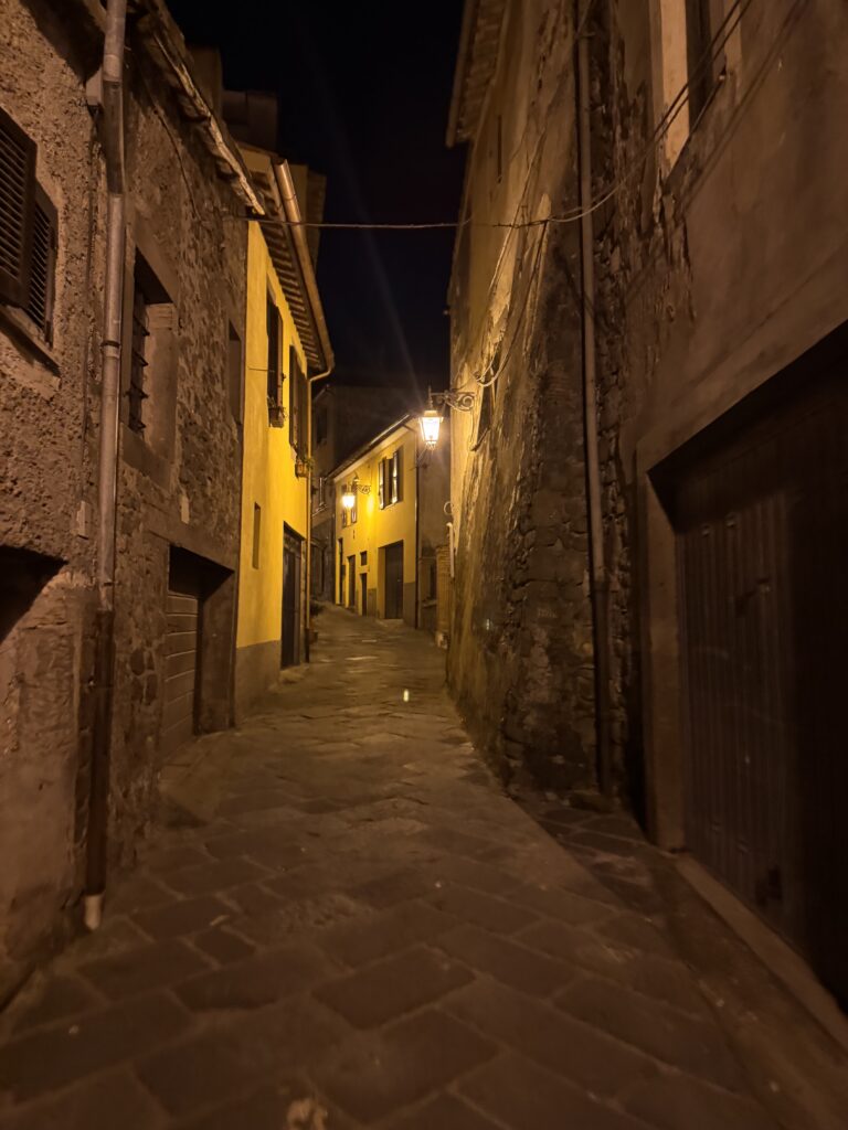Irgendwo in Montefiascone, mit dem Gefühl des kalten Wassers noch auf der Haut, mit dem Gefühl auf der Haut, der Katze, die an sich an mich schmiegte, mit der Erinnerung an 400 Kilometer, die hinter mir liegen, und 100 Kilometer, die noch vor mir liegen, mit dem Wissen, dass drei Dinge reichen – Essen, Wasser, eine warme Unterkunft – und dass alles andere Geschenk ist, mit der Gewissheit, dass ich müde bin, aber trotzdem weitergehe, weil man immer weitergeht, weil es das ist, was man tut, weil das Leben selbst ein Weitergehen ist – und dass das reicht, mehr als reicht.