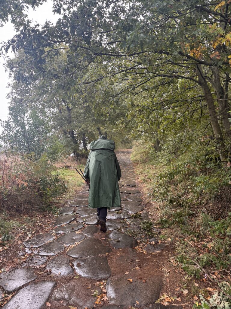 Nicht weil ich loco bin. Sondern weil ich verstanden habe: Der Regen ist nicht mein Feind. Er ist einfach Regen. Und ich bin einfach ein Pilger, der durch ihn hindurchgeht.