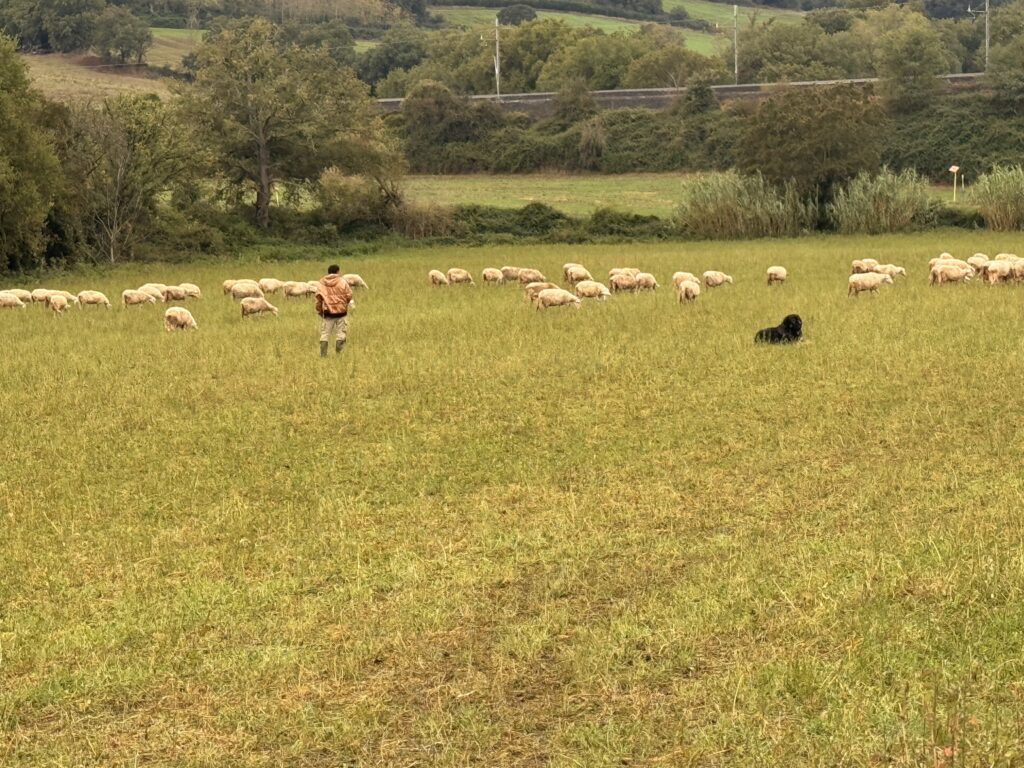 Irgendwo in Viterbo, mit nassen Kleidern, die trocknen, und trockenen Augen, die feucht werden, wenn ich an morgen denke, mit der Erinnerung an Judith und ihre 1300 Kilometer Vertrauen, an den Baum, der steht, während alles um ihn herum fliegt, an das Café, das eine Insel ist, an Lena und Dora, die ich morgen zurücklasse, aber die trotzdem bei mir bleiben werden – in der Farbe des Weizens, im Rauschen des Windes, in jedem Berg, den ich hinaufgehe, in jedem Moment, in dem ich verstehe: Man sieht nur mit dem Herzen gut, das Wesentliche ist für die Augen unsichtbar