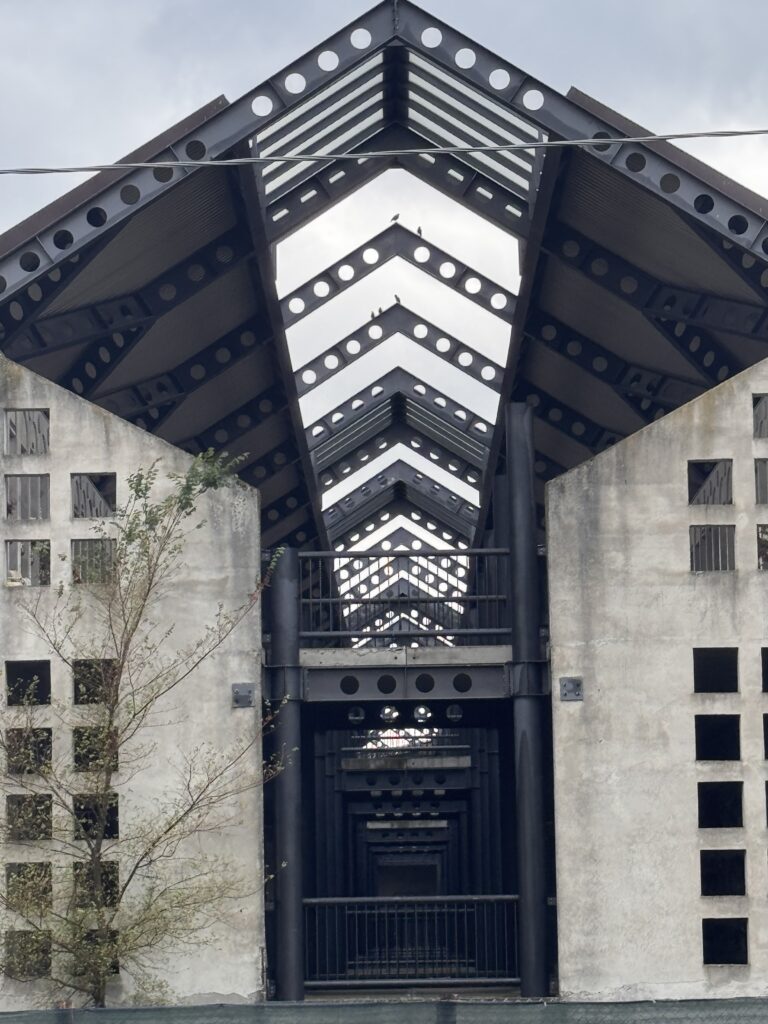 Ich gehe durch den Schlafsaal zur Tür des Hostels hinunter.
