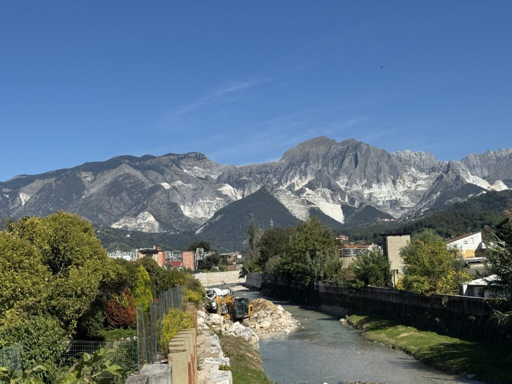 Wir näherten uns Avenza, einem Stadtteil von Carrara, Schritt für Schritt. Über Felder, entlang der Kanäle. Die Stadt zeigte sich langsam, enthüllte sich in Schichten.